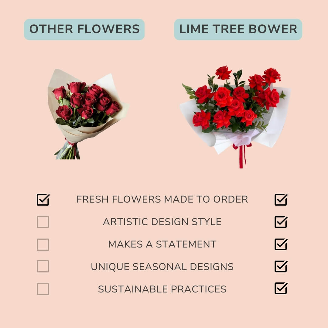 Each bouquet comes with a Flower Care Card which details instructions to the recipient on how to take care of their flowers after unwrapping.